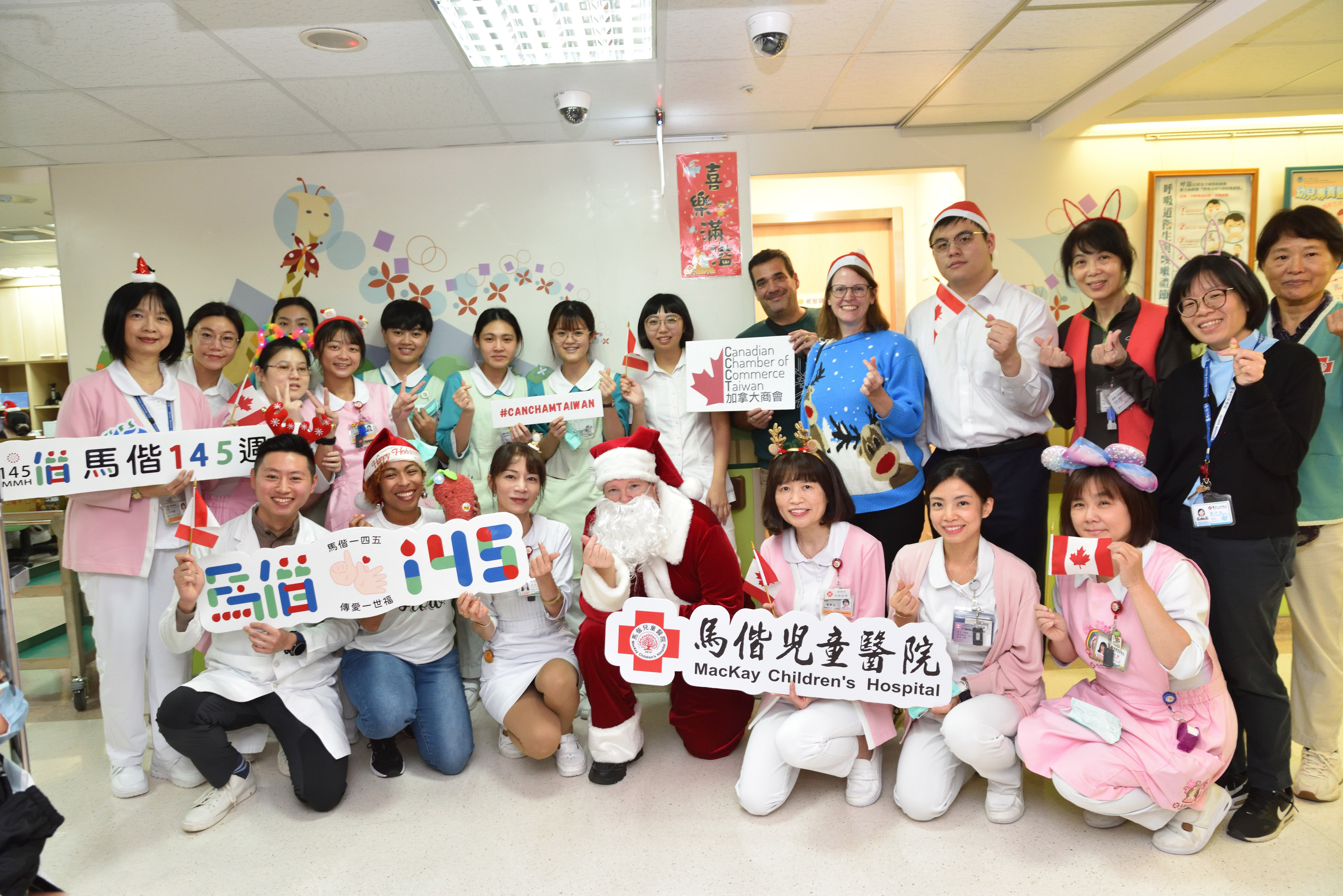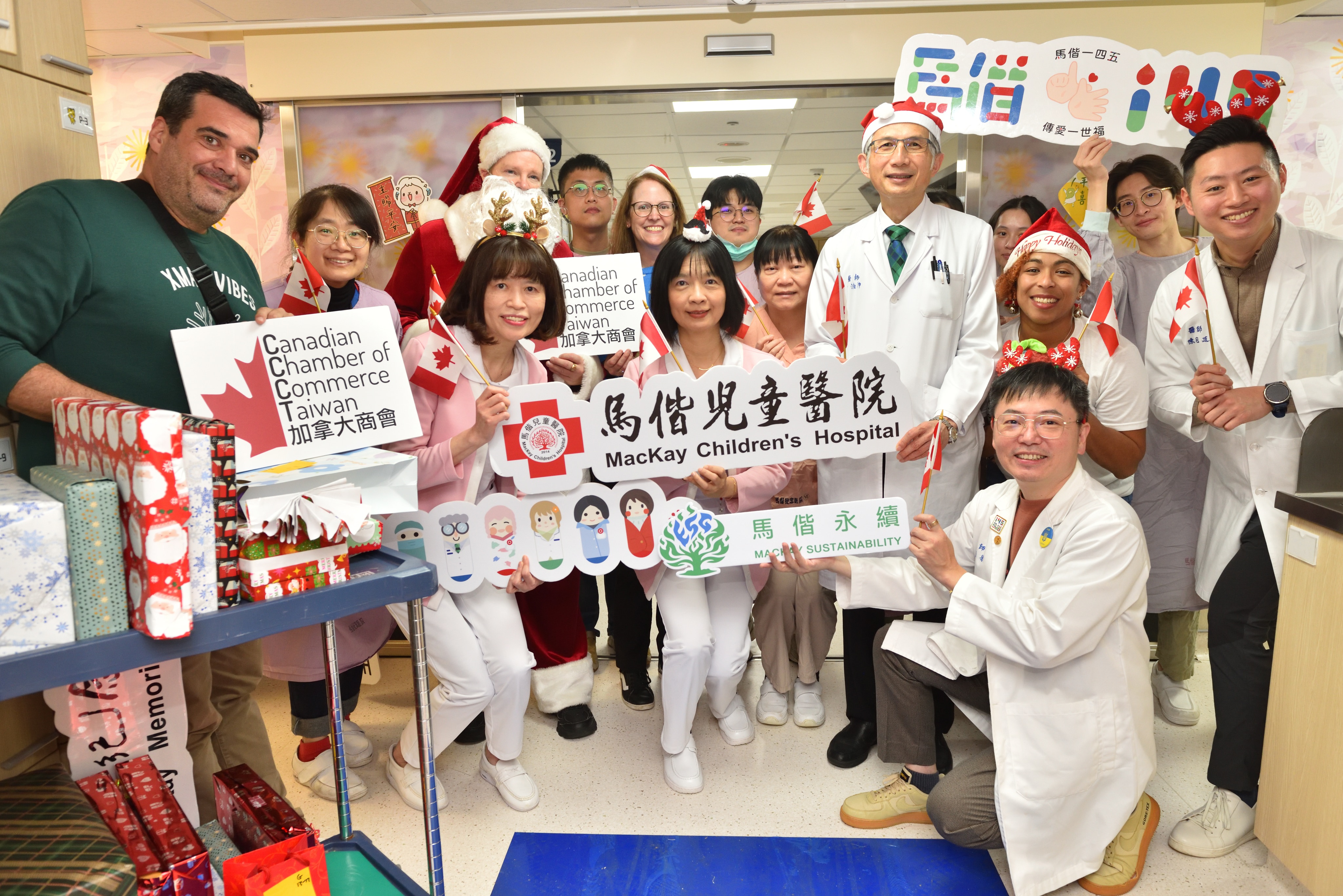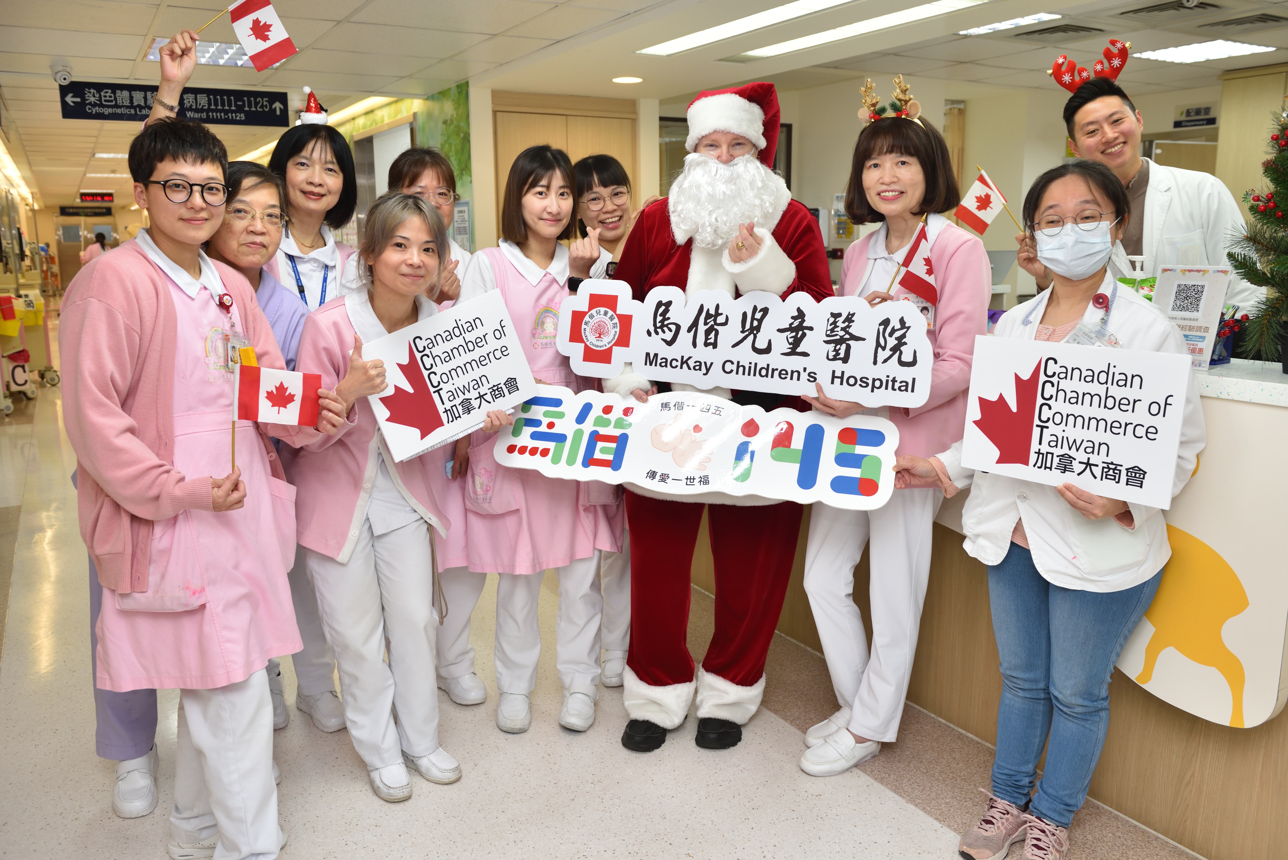 每年聖誕佳節馬偕兒童醫院總是早早妝點起聖誕布置,洋溢著滿滿的溫馨氣息。今(23)日,長期支持馬偕醫療的加拿大商會,繼去年裝扮成聖誕老人將一份份禮物送到病房,今年再次精心準備150份禮物來到馬偕兒童醫院,藉由「加愛同行 關懷病童送暖活動」,將溫暖與祝福一一親手送到住院病童與醫護人員手中,讓因為治療不能外出的孩子們在治療期間也能感受到節日的溫馨與陪伴。