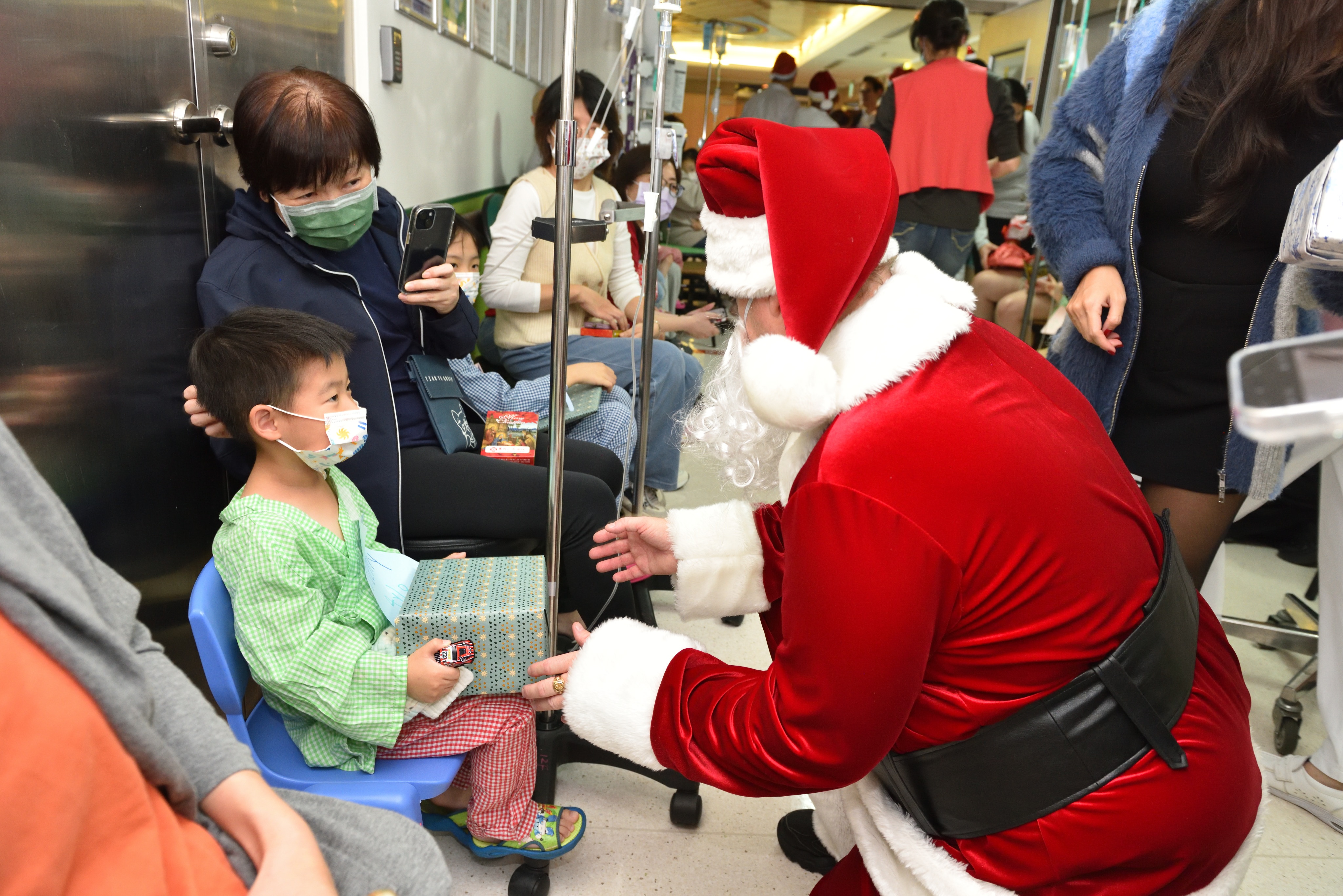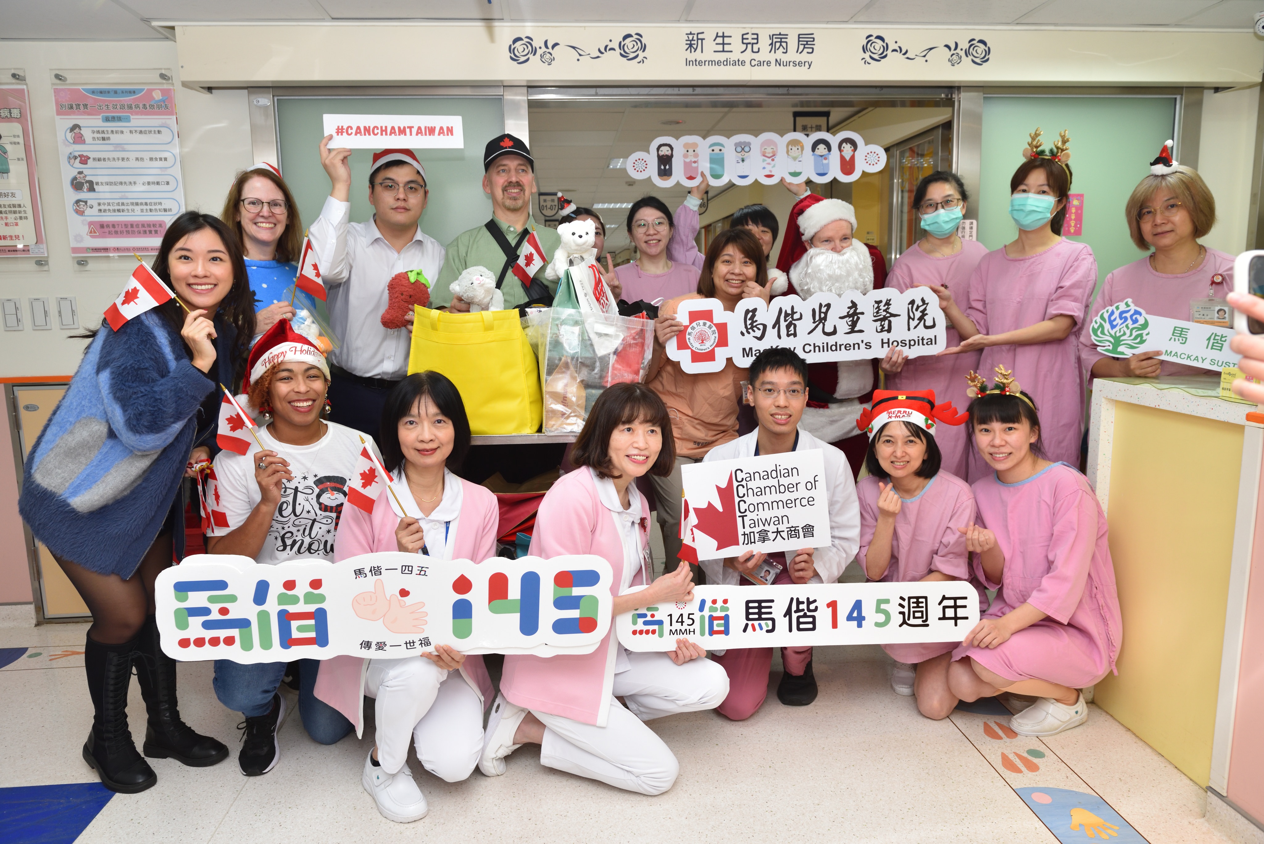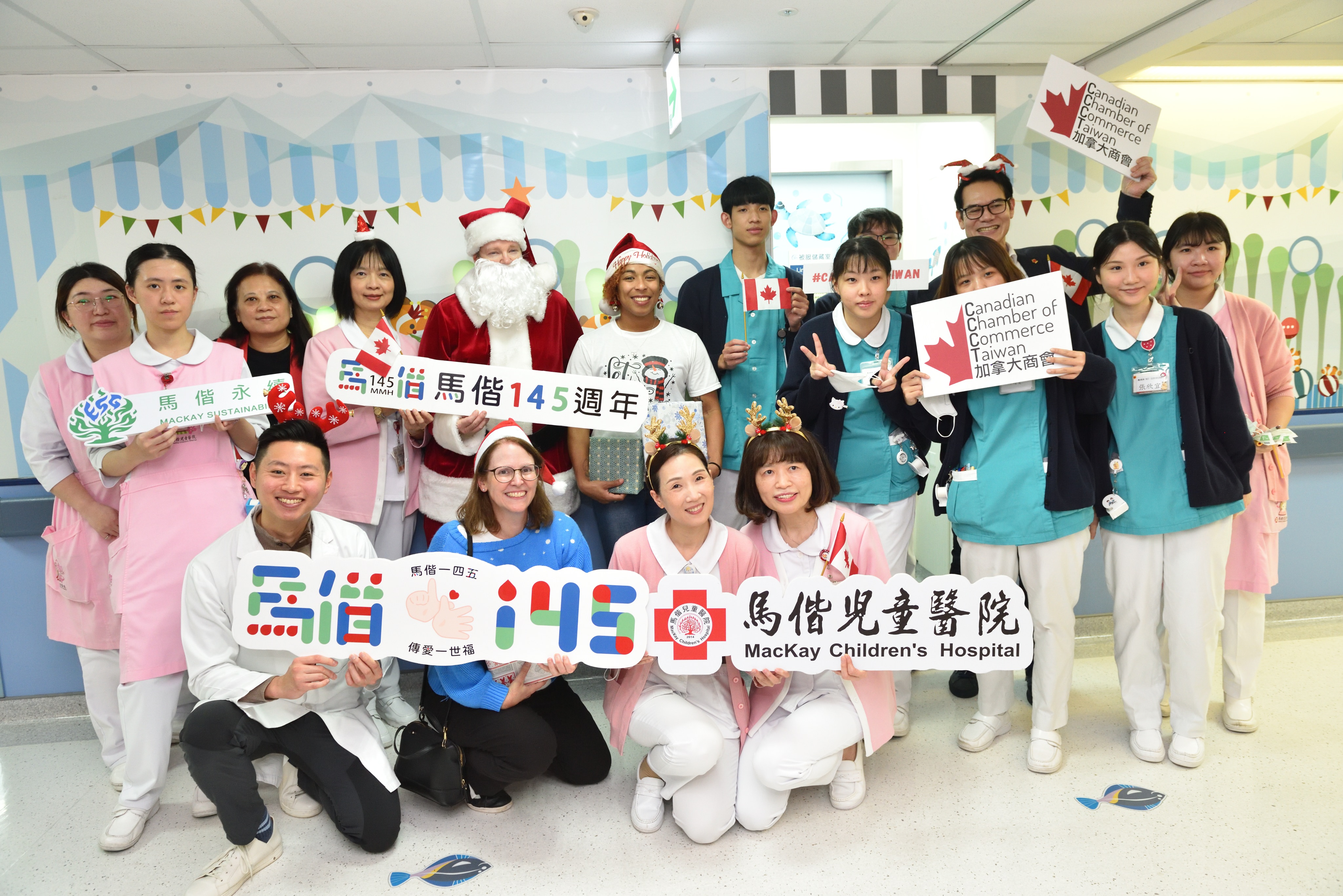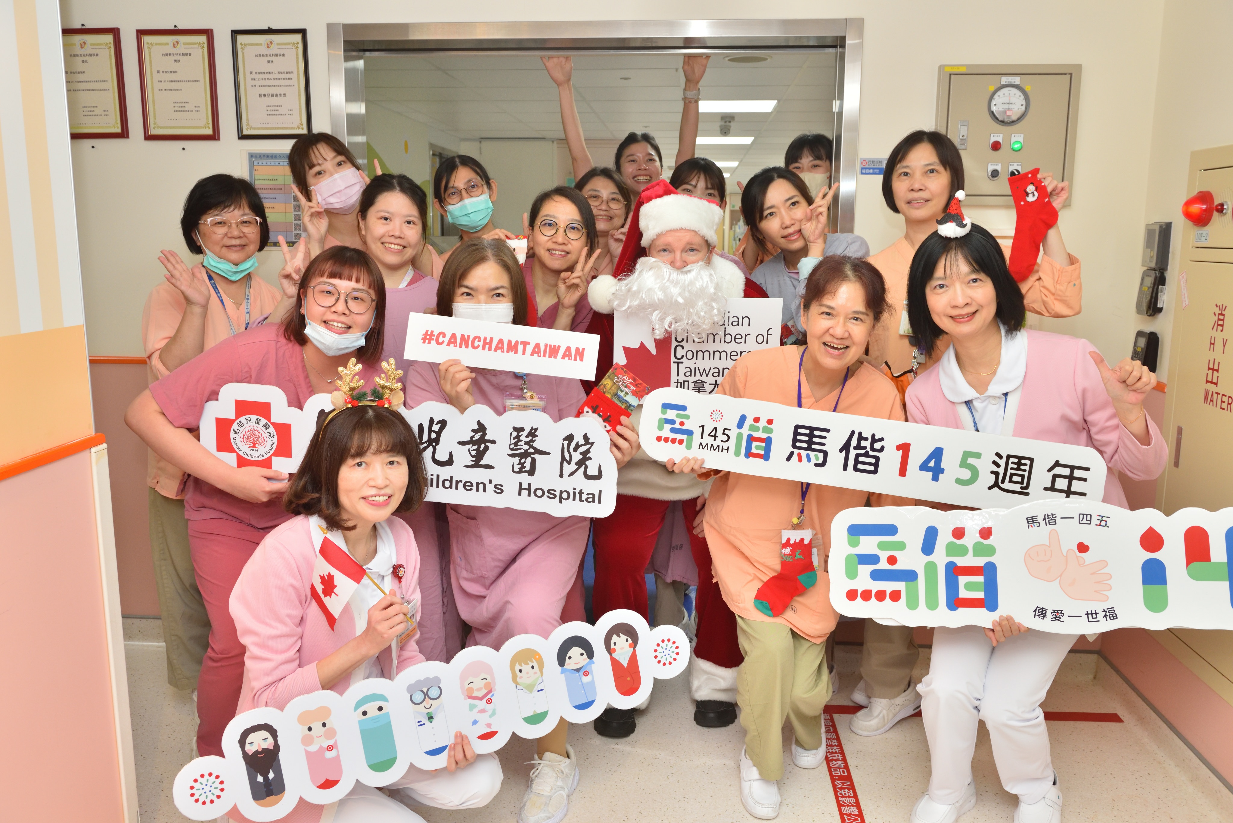 每年聖誕佳節馬偕兒童醫院總是早早妝點起聖誕布置,洋溢著滿滿的溫馨氣息。今(23)日,長期支持馬偕醫療的加拿大商會,繼去年裝扮成聖誕老人將一份份禮物送到病房,今年再次精心準備150份禮物來到馬偕兒童醫院,藉由「加愛同行 關懷病童送暖活動」,將溫暖與祝福一一親手送到住院病童與醫護人員手中,讓因為治療不能外出的孩子們在治療期間也能感受到節日的溫馨與陪伴。