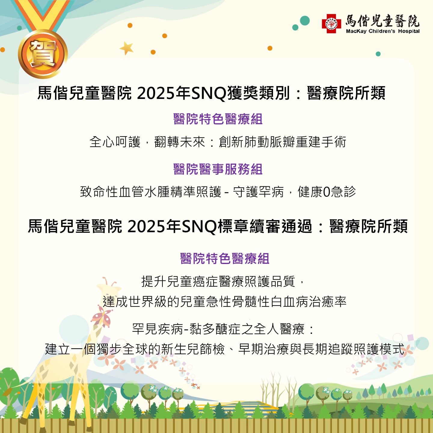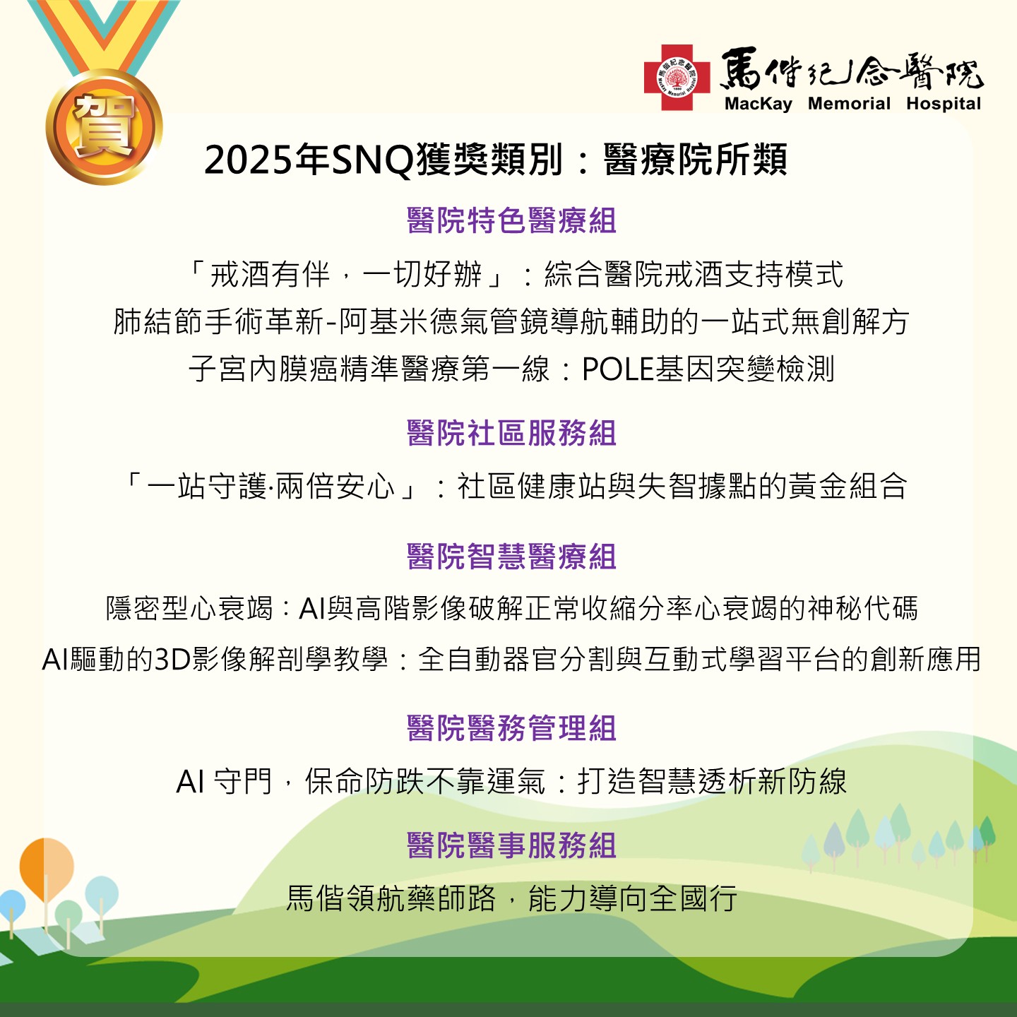 蕃新聞:馬偕創歷年新高!勇奪14項SNQ國家品質標章暨國家生技醫療品質獎