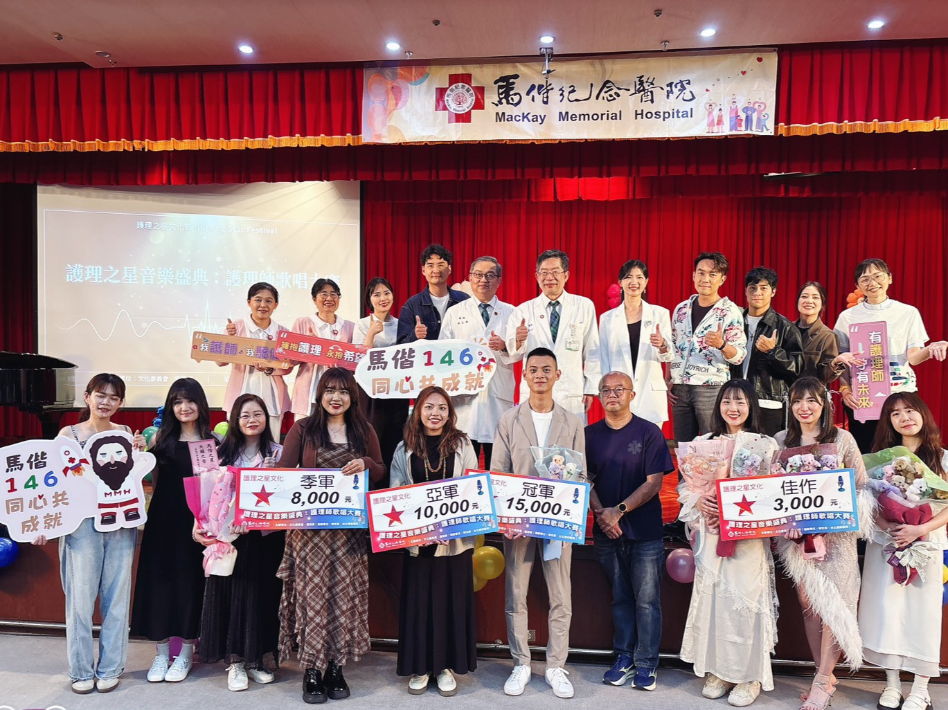 ▲ 馬偕紀念醫院舉辦第一屆「護理之星」歌唱比賽,由總院長張文瀚(中)親自到場頒獎並感謝每一位參賽者用生命故事在歌唱。