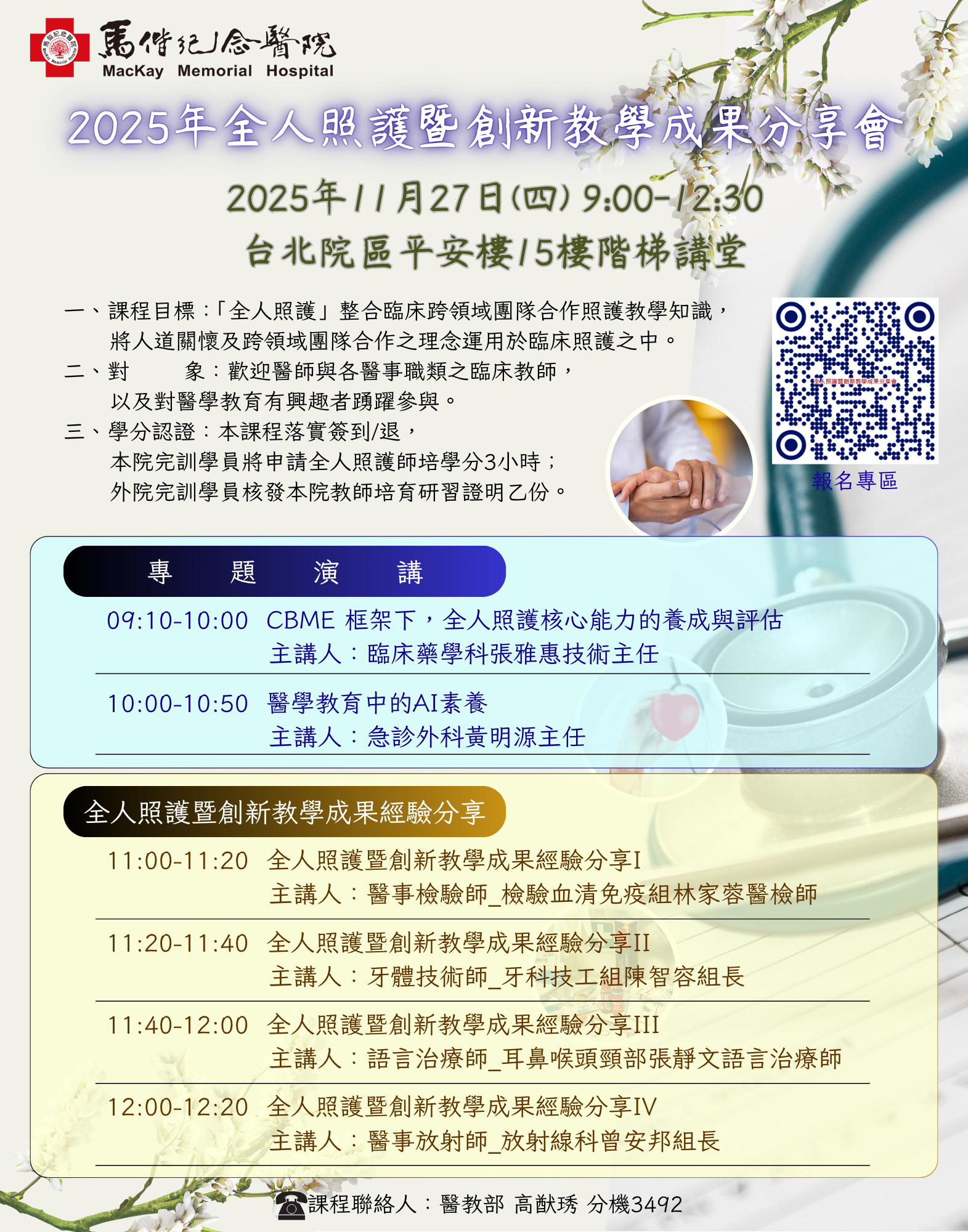 周六的時光,在馬偕紀念醫院15樓的講堂依舊充滿著學習交流的氛圍,既溫馨且圓滿。