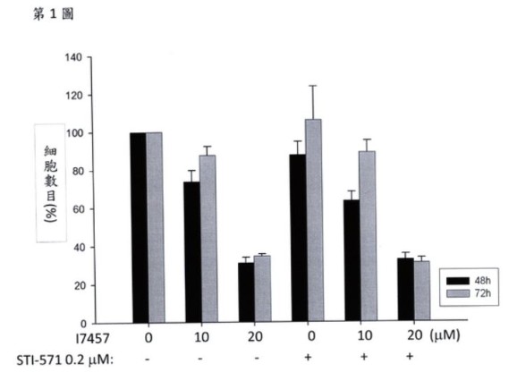 3.此類化合物可應用於治療上述具有抗藥性或是對目前化學藥物治療不敏感之癌症的藥物組合。
