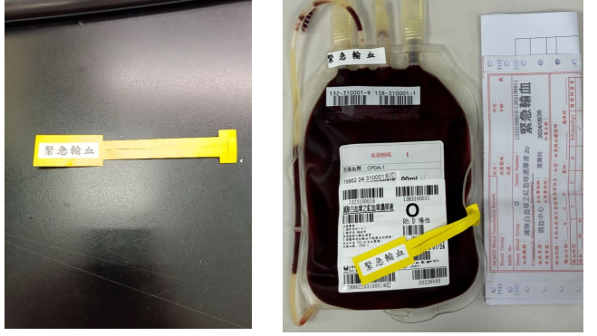 1. 緊急輸血血袋上增加緊急輸血掛條,亮黃色設計讓人員輕易辨識是緊 急輸血血品。