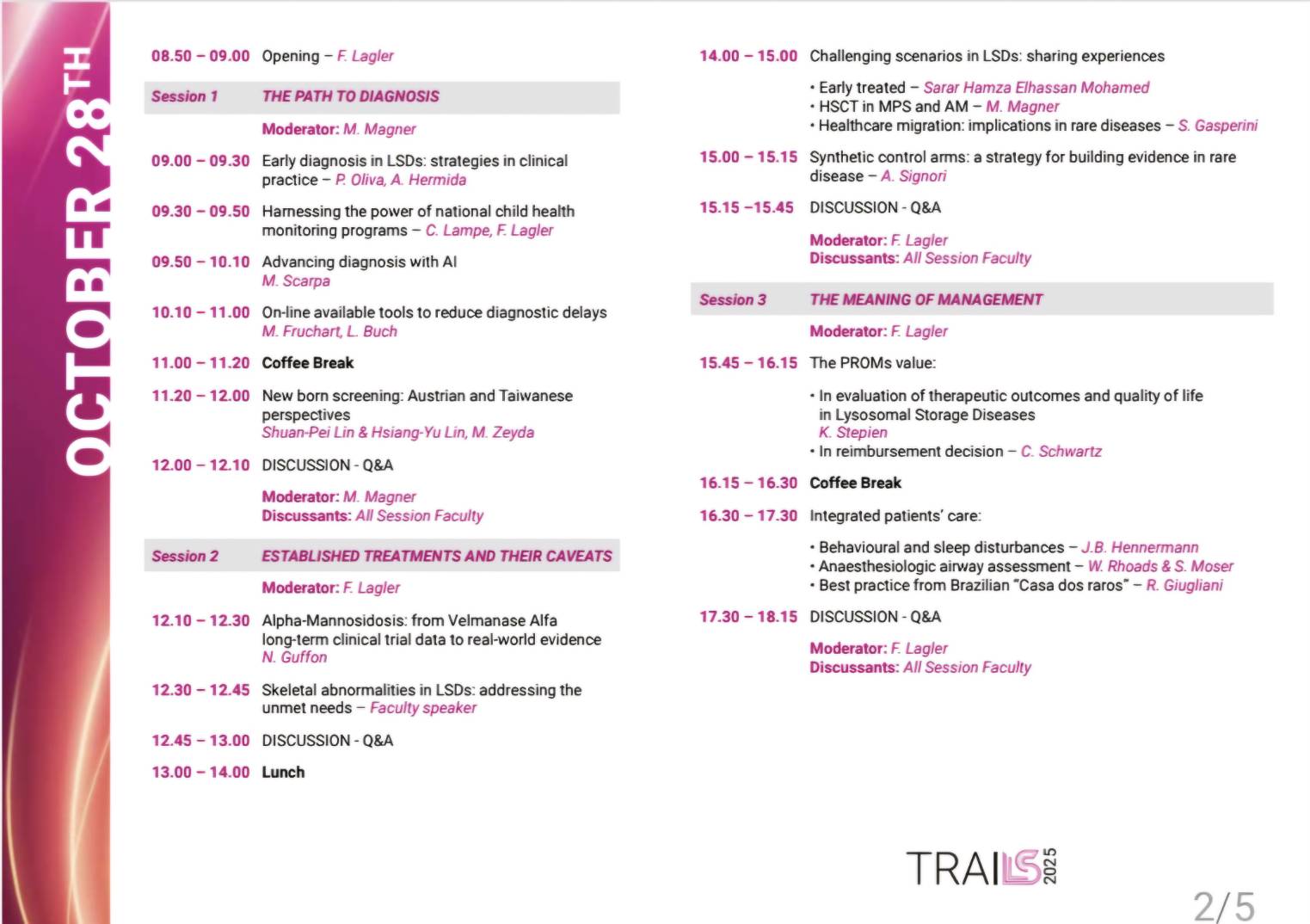 恭賀!林炫沛教授與林翔宇教授榮獲在奧地利維也納舉辦之國際醫學會議〔TRAILS 2025 – Alpha Mannosidosis and Mucopolysaccharidosis - Optimizing Patient Journeys〕邀請擔任 Faculty (專家學者團隊)。演講題目為:台灣黏多醣症新生兒篩檢之十年經驗。