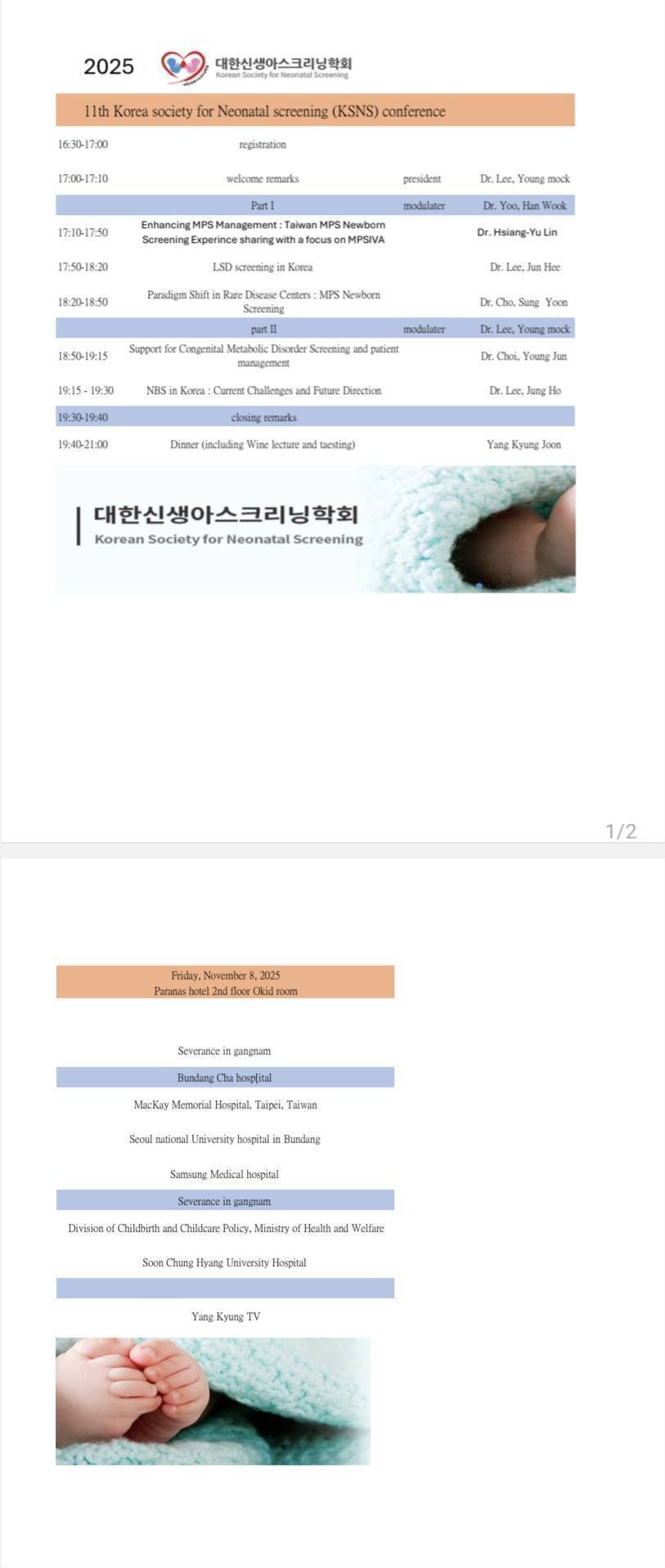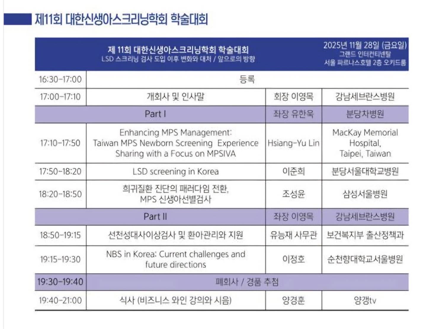 恭賀!林翔宇教授榮獲 2025/11/28 在韓國首爾舉辦之〔2025年第11屆韓國新生兒篩檢會議〕邀請擔任演講者。演講主題為:黏多醣症新生兒篩檢之台灣經驗。
