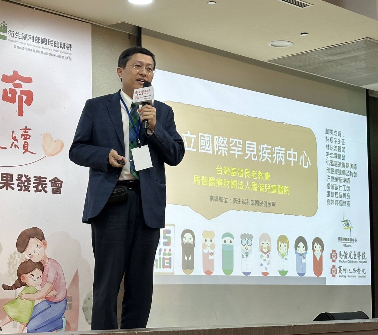 恭賀!衛生福利部國民健康署「攜手守護罕見生命,你我共築讓愛延續--罕見疾病照護服務成果發表會」:今日由林翔宇主任代表〔馬偕罕病團隊〕上台報告本團隊承接〔罕見疾病照護服務計畫〕六年來的卓越成果。