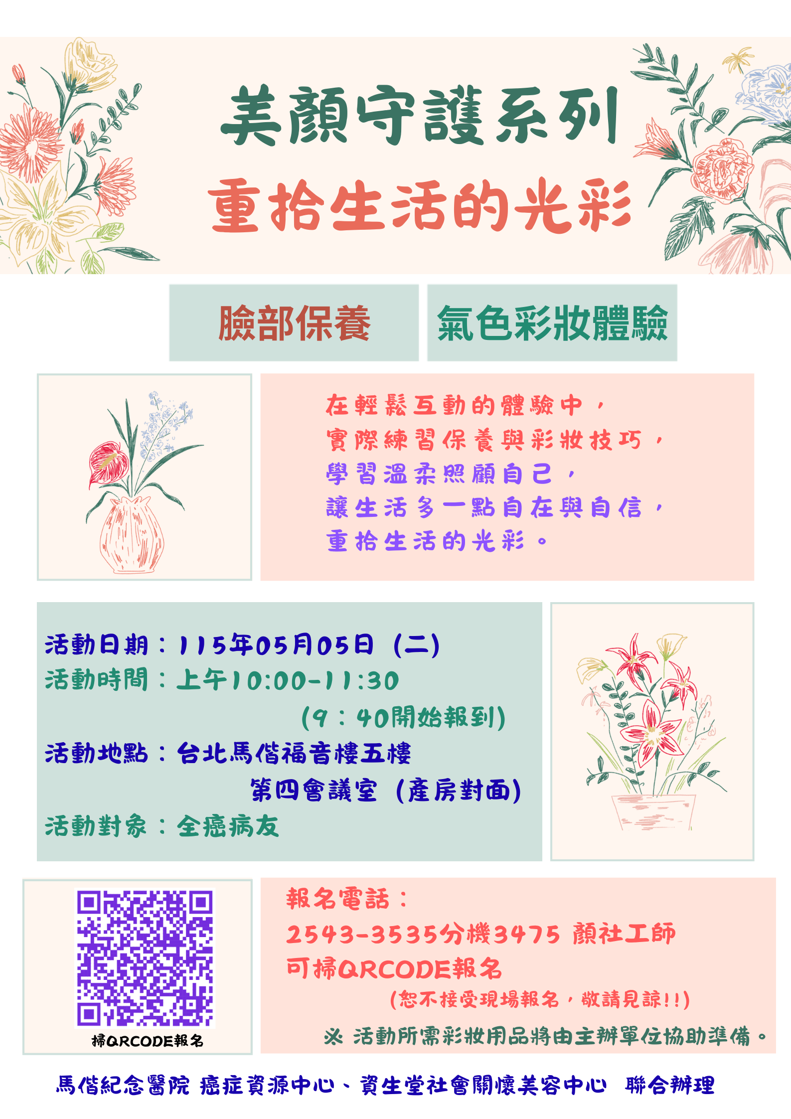 報名方式(擇一):可來電報名 或 下方海報QR code掃瞄 或點選網址https://reurl.cc/mpqZp7
