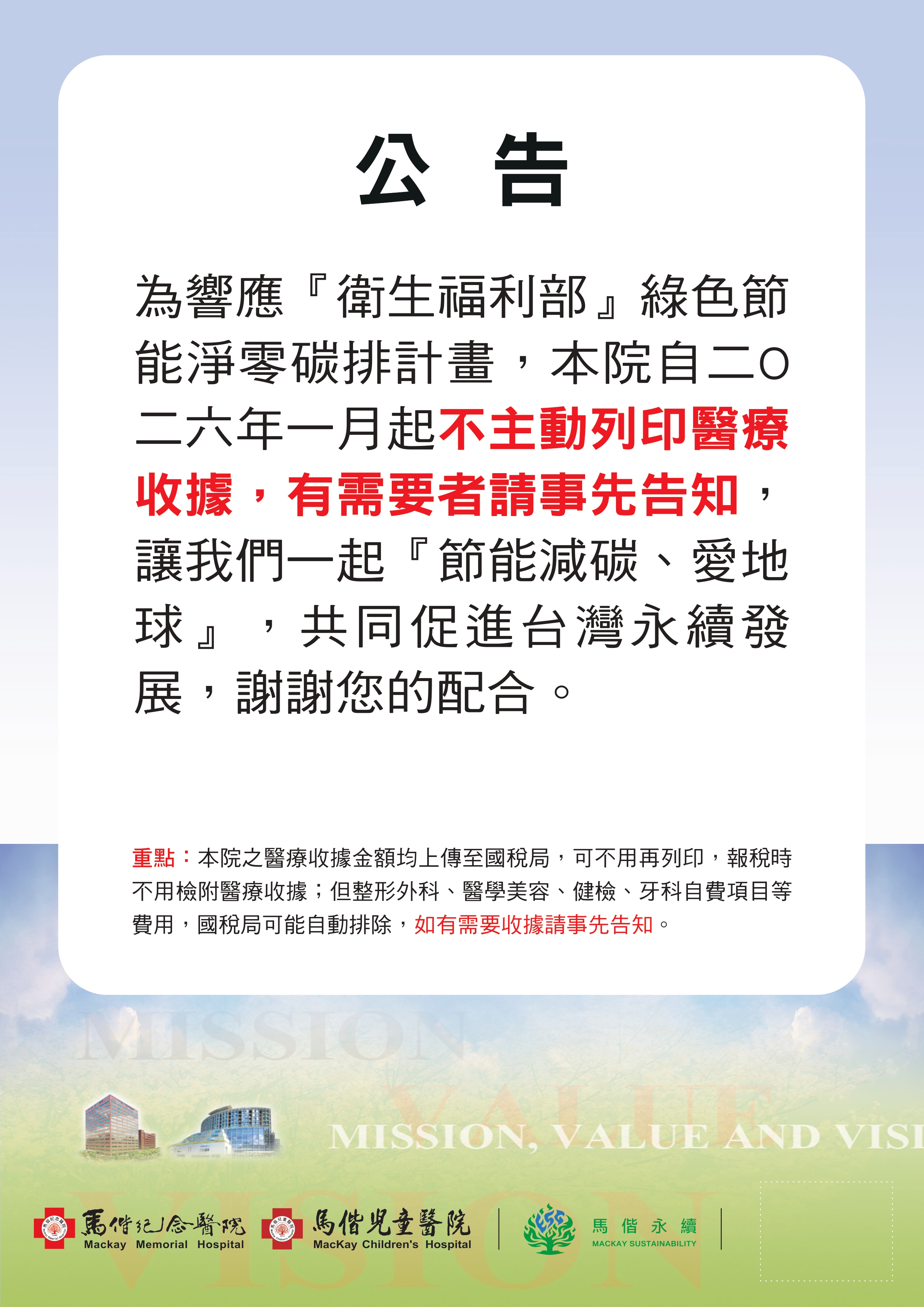 自115年1月1日起,馬偕紀念醫院、淡水馬偕紀念醫院、馬偕兒童醫院,