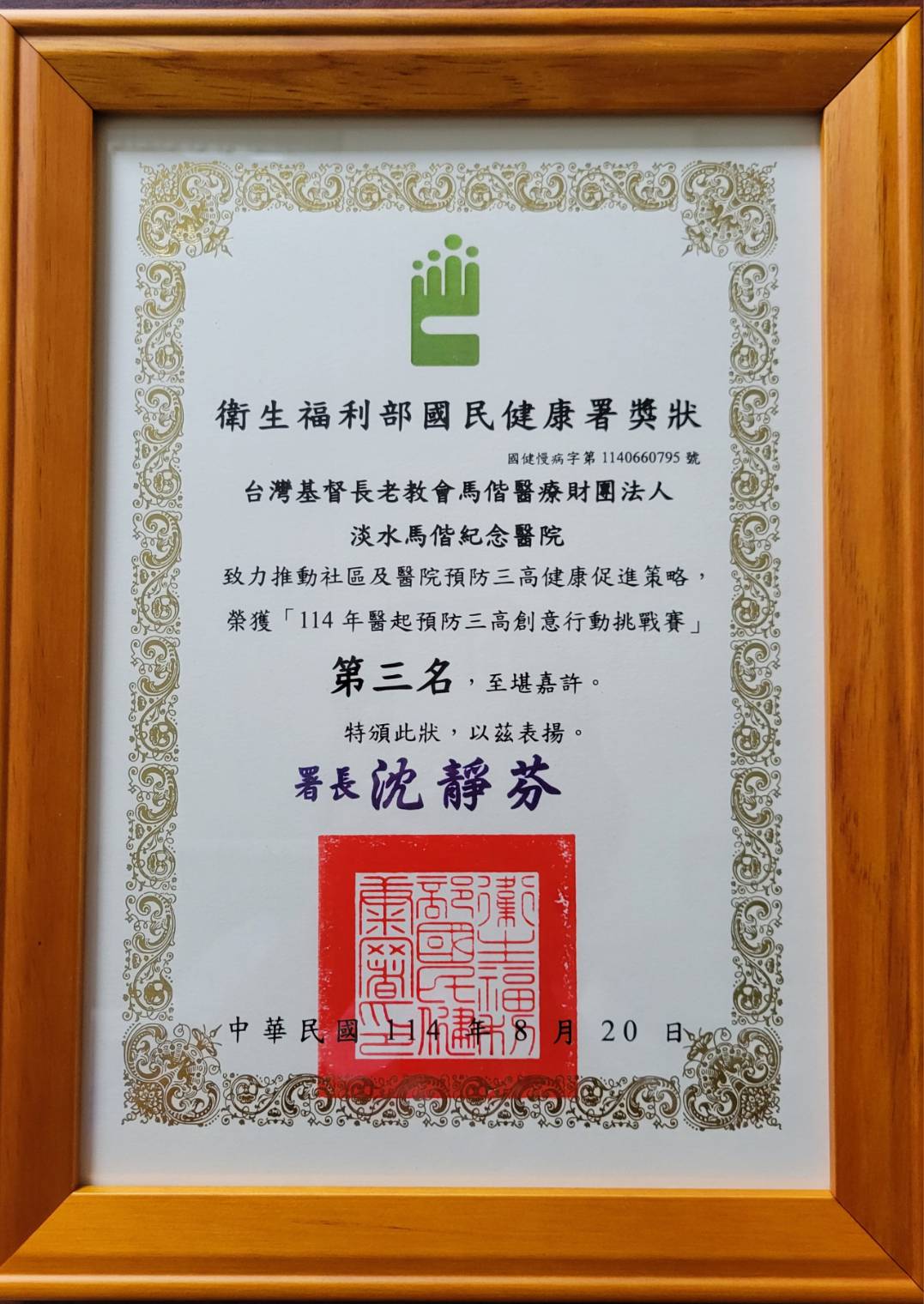 賀!淡水馬偕紀念醫院榮獲「114年醫起預防三高創意行動挑戰賽」醫學中心組第二名