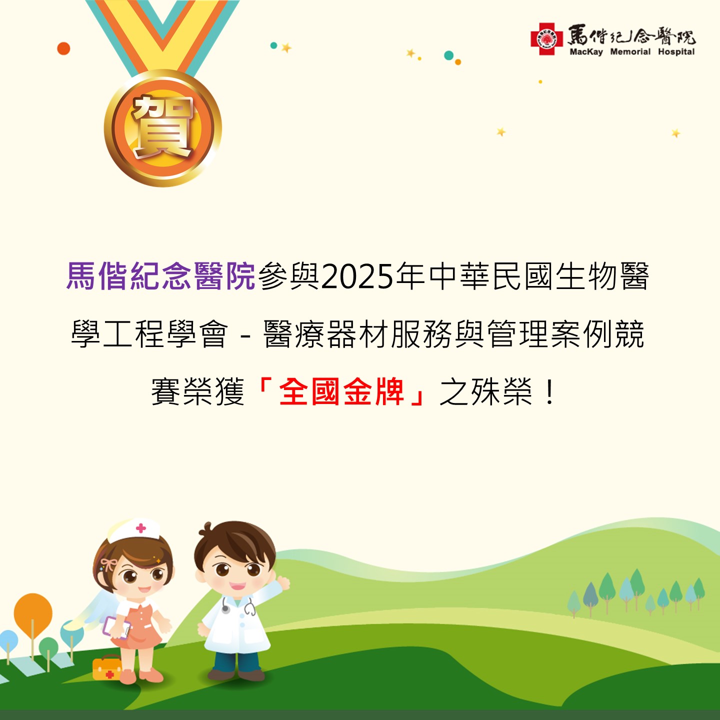 賀!馬偕紀念醫院參與2025年中華民國生物醫學工程學會-醫療器材服務與管理案例競賽,榮獲「全國金牌」。