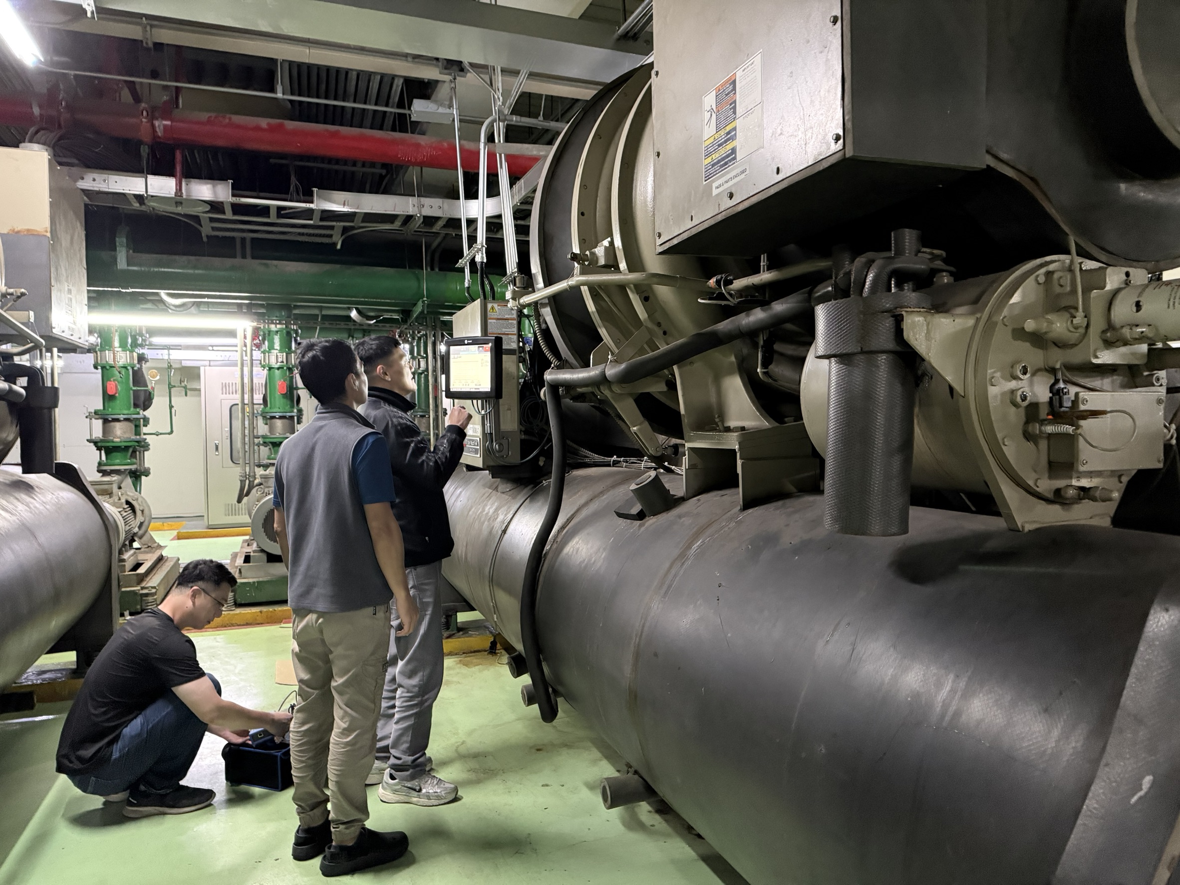 ▲透過高耗能設備盤點進行系統性能源管理,圖為台北馬偕空調主機設備量測。