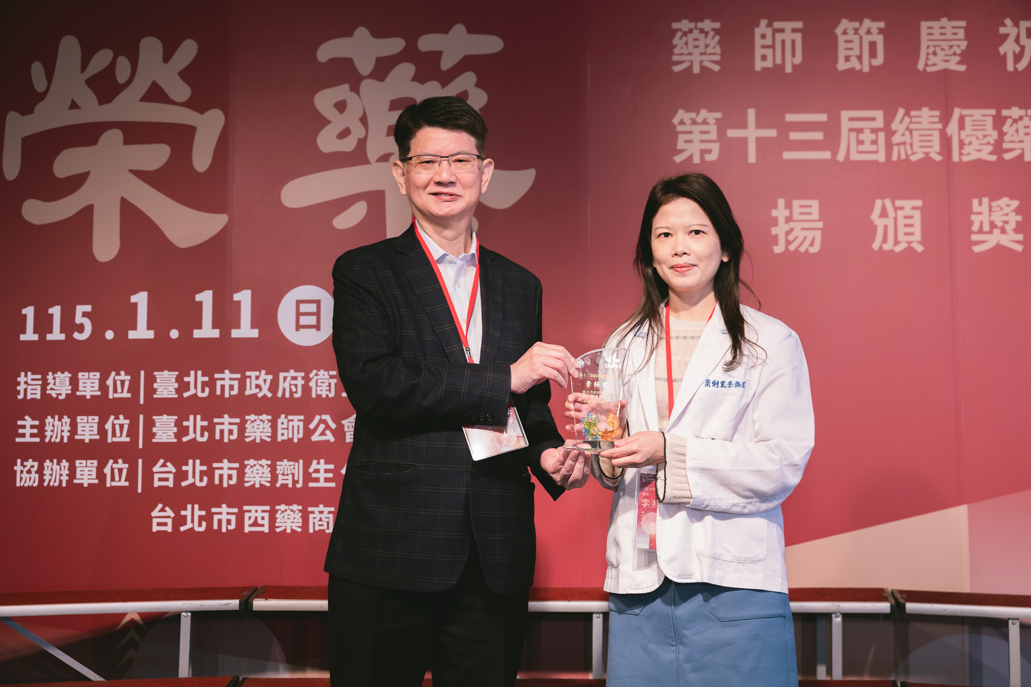 賀!馬偕紀念醫院臨床藥學科李梅君組長,榮獲臺北市藥師公會「臺北市第十三屆績優藥事人員」。