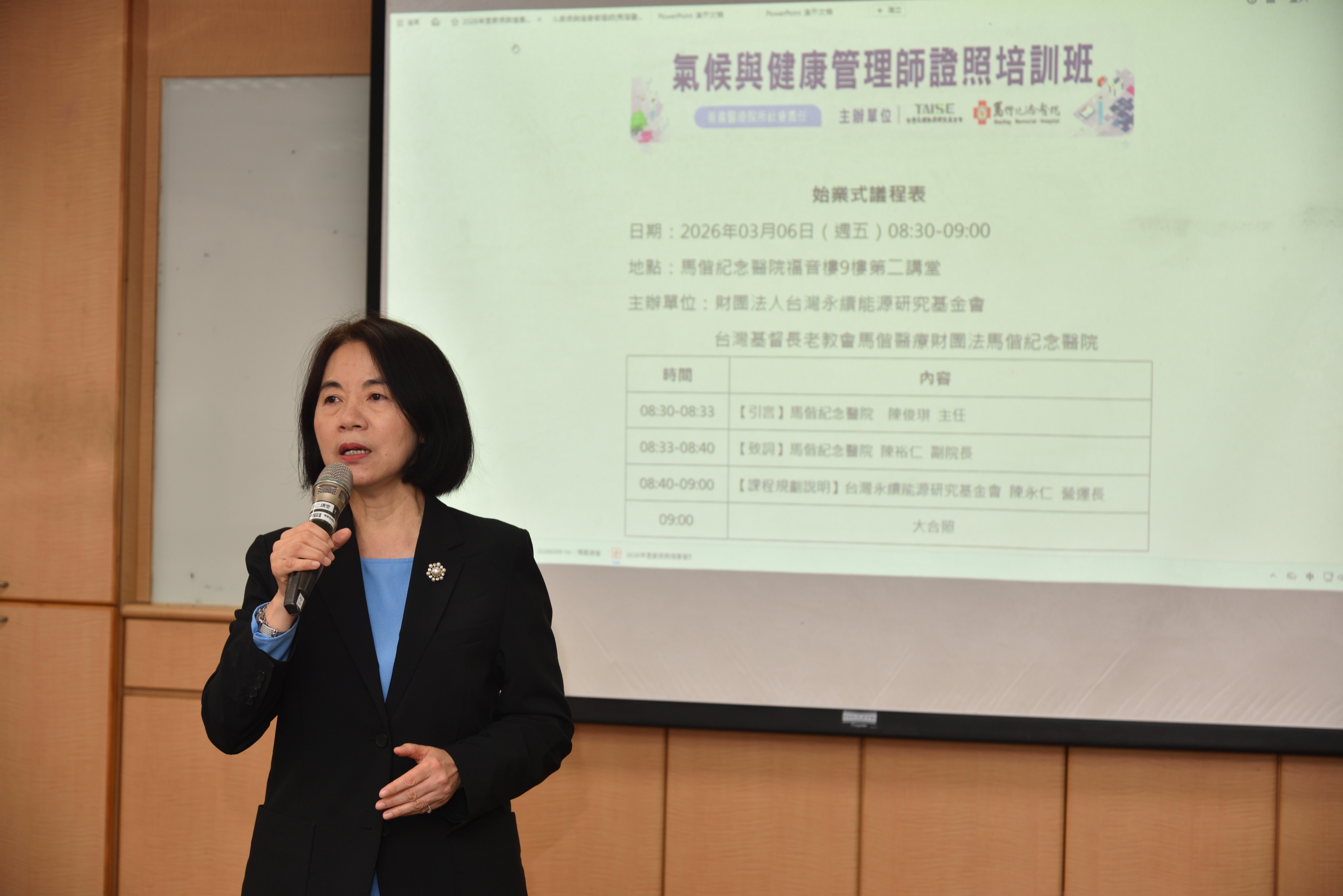 為配合醫院永續發展政策並培育具備氣候與健康專業能力的人才,馬偕紀念醫院攜手台灣永續能源研究基金會,於2026年3月至5月期間在院內舉辦第二屆「氣候與健康管理師證照培訓班」。今(6)日舉行始業式,由馬偕紀念醫院總院長張文瀚致詞揭開序幕,台灣永續能源研究基金會秘書長周麗芳及營運長陳永仁亦出席勉勵學員並介紹培訓課程規劃與內容。