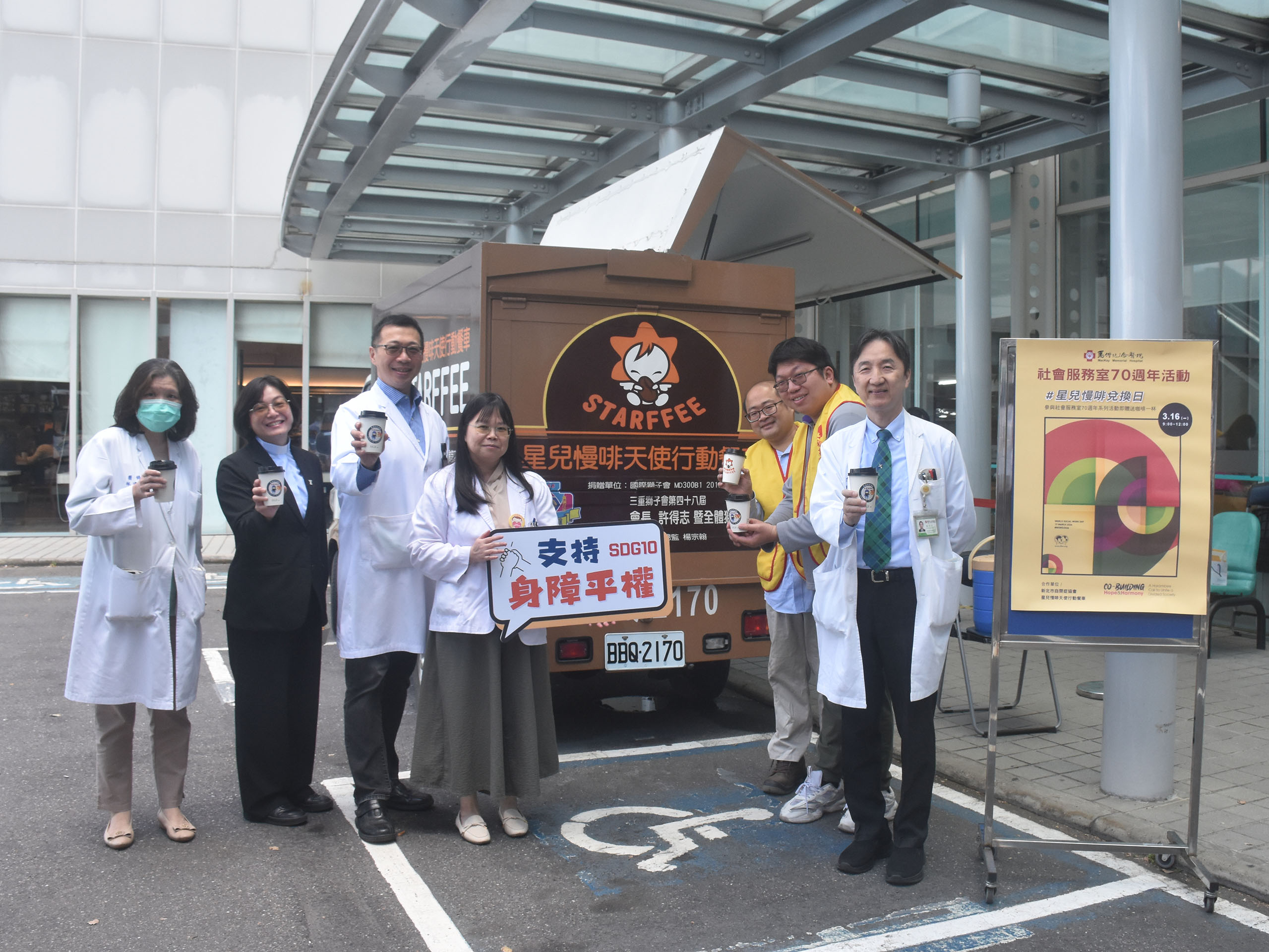 為響應2026年「世界社會工作日」(World Social Work Day),並迎接院內社會服務室成立70週年,淡水馬偕紀念醫院自3月16日至3月20日於院內舉辦系列公益活動,並於3月16日上午揭開序幕,透過「星兒慢啡兌換日」及「捐本書讓孩子看見更寬廣的世界」閱讀分享活動,邀請院內同仁與民眾共同參與,以行動支持社會關懷與閱讀推廣。