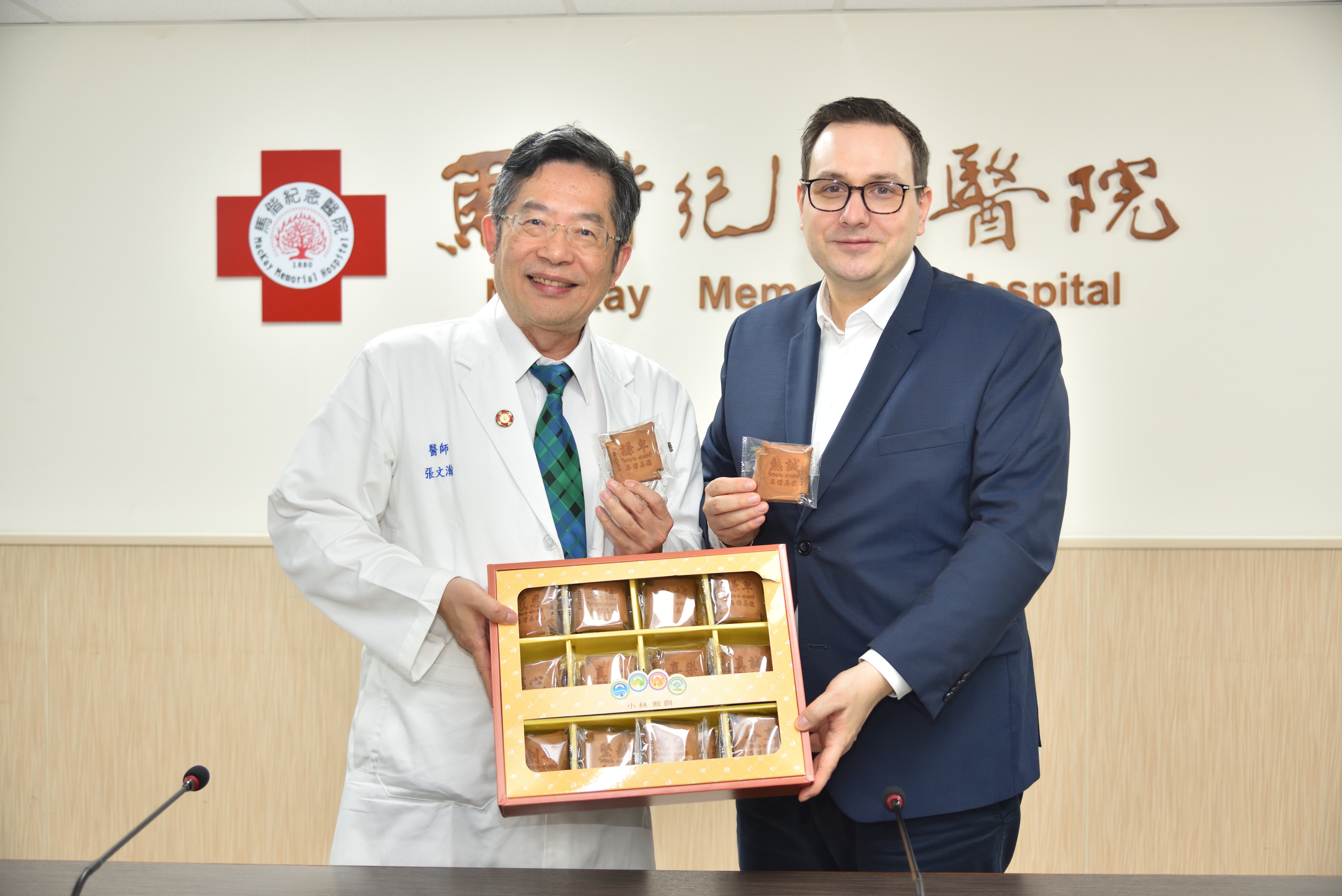 ▲圖一、捷克眾議員利帕夫斯基(右)來訪馬偕紀念醫院,由總院長張文瀚(左)親自接待。