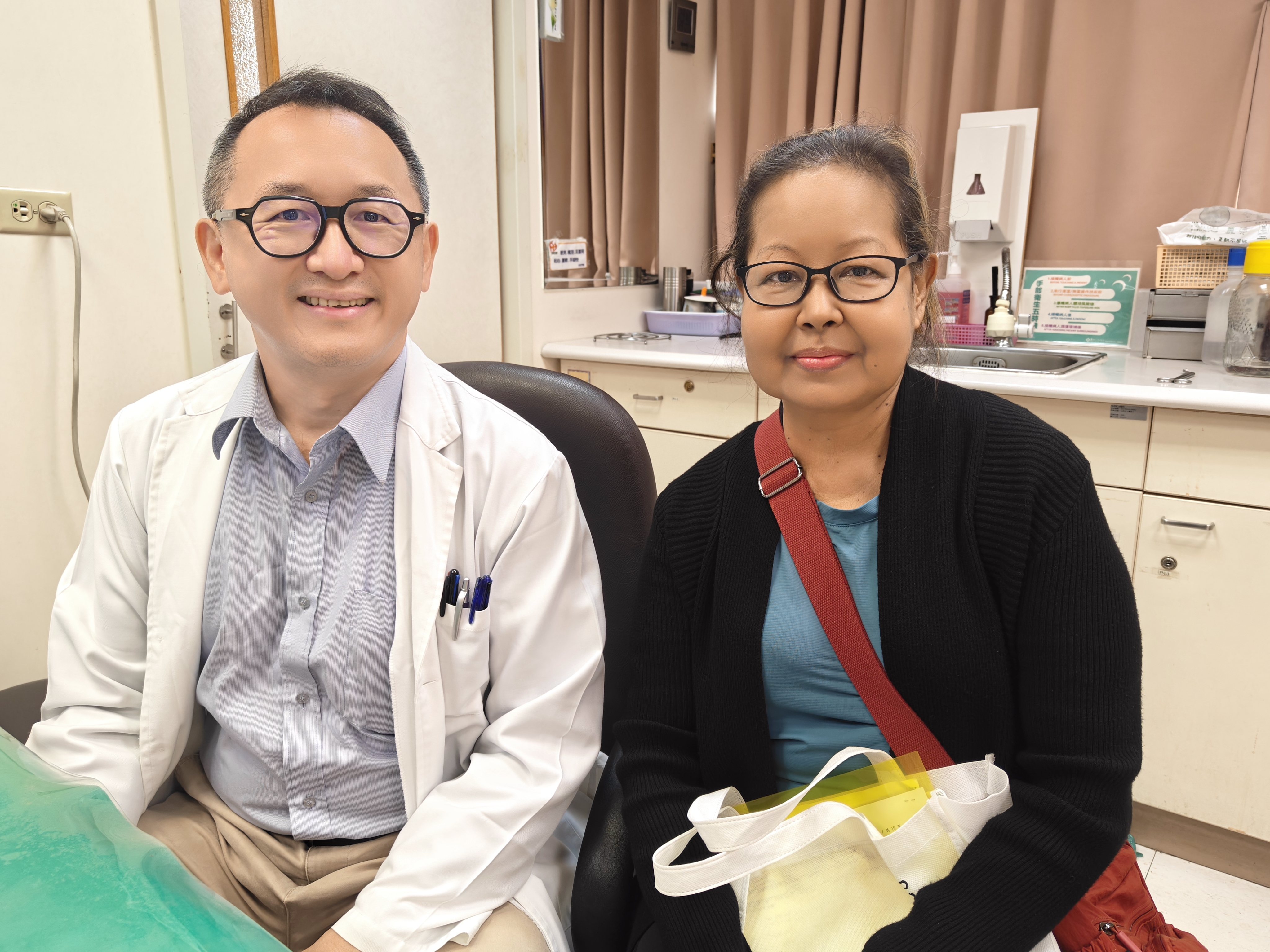 ▲右圖、米德莉即將返國於診間與主治醫師林俊昌合影留念。