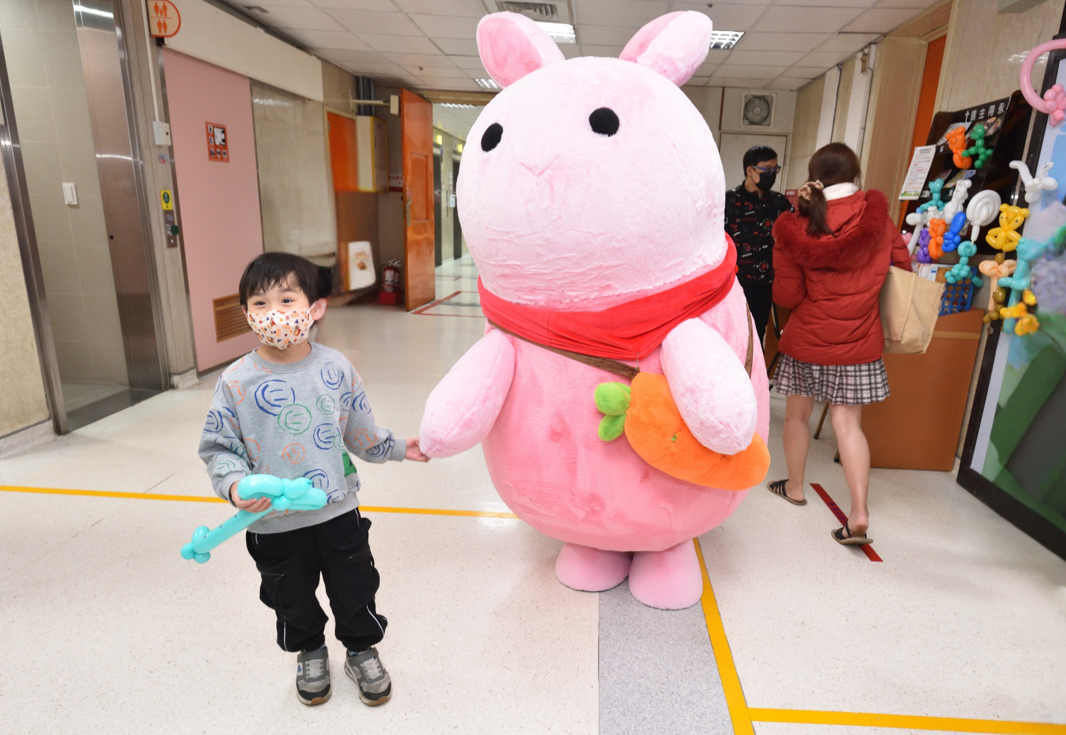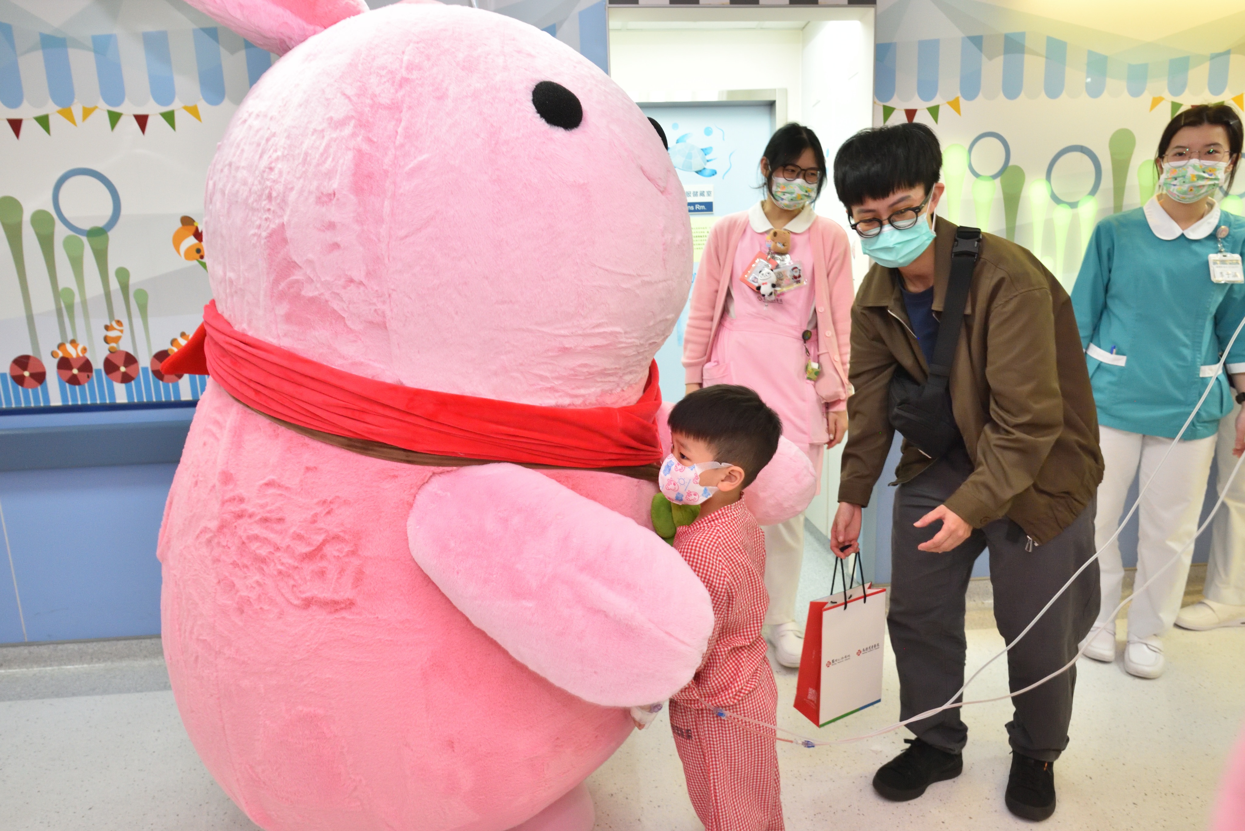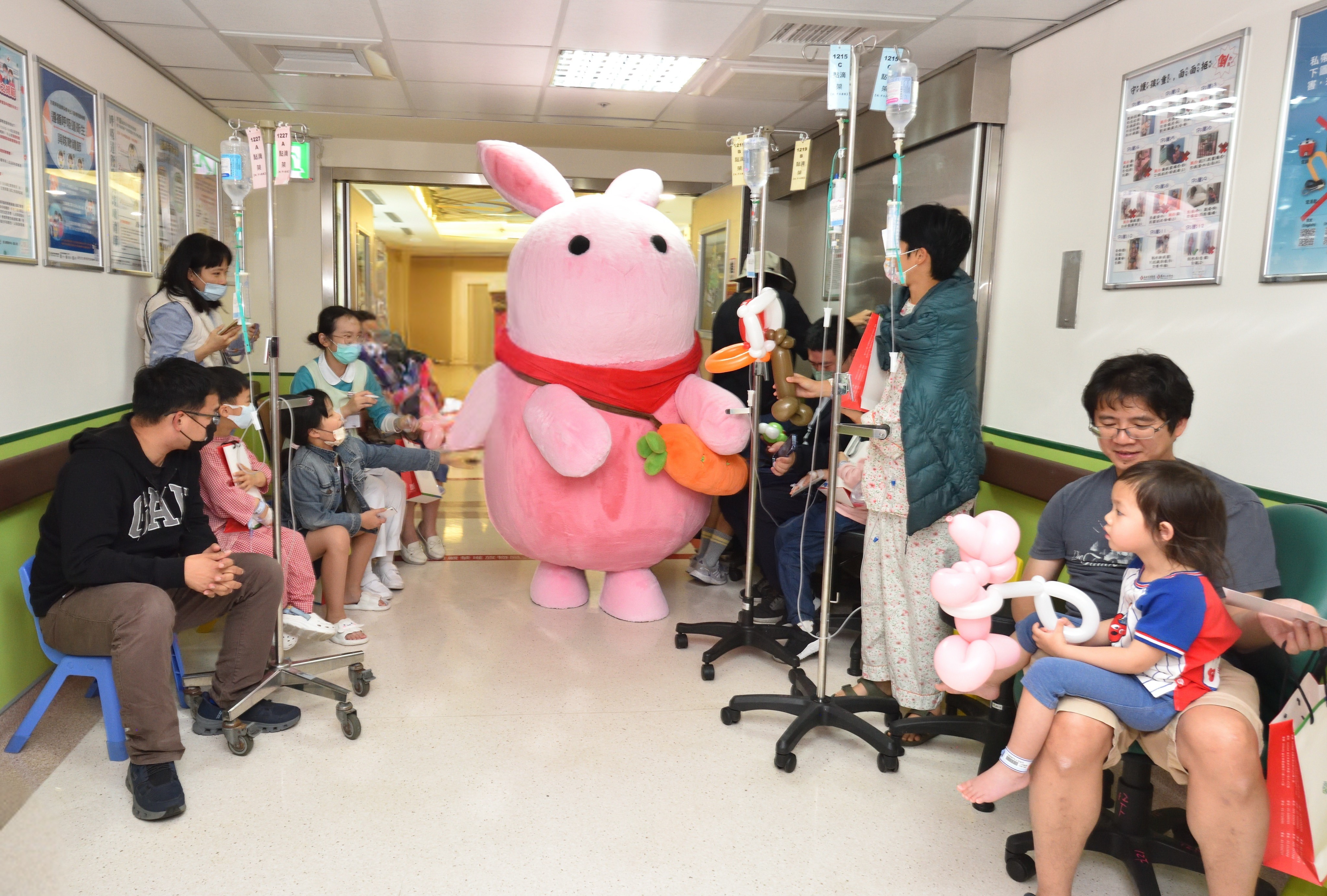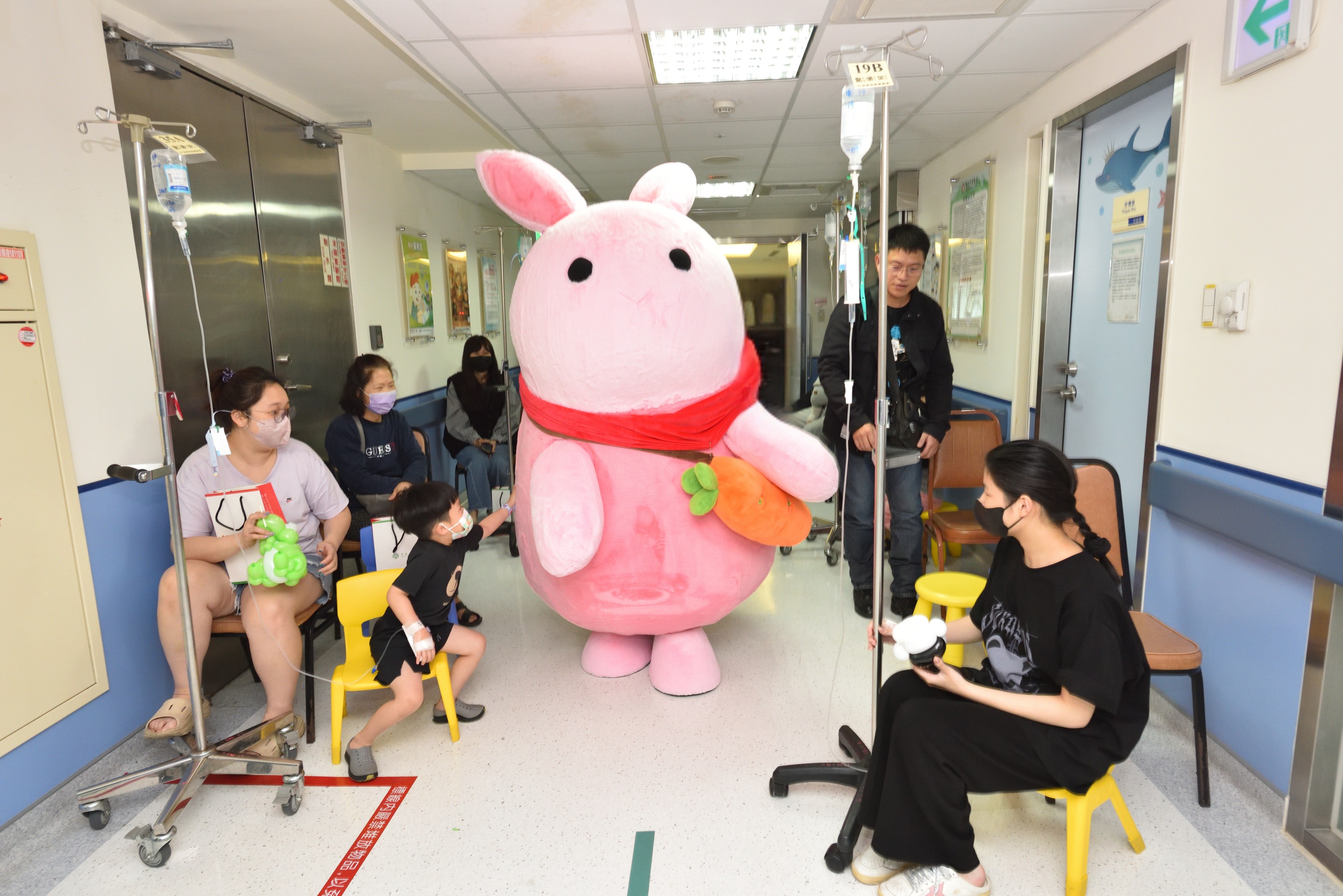 ▲ 馬偕兒童醫院吉祥物「棉花糖兔兔」初次亮相走入病房,軟萌形象讓大、小朋友夾道歡迎。