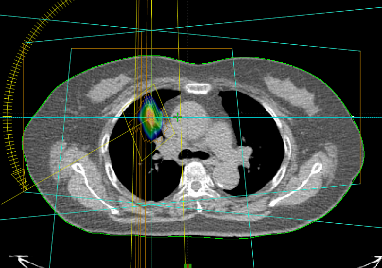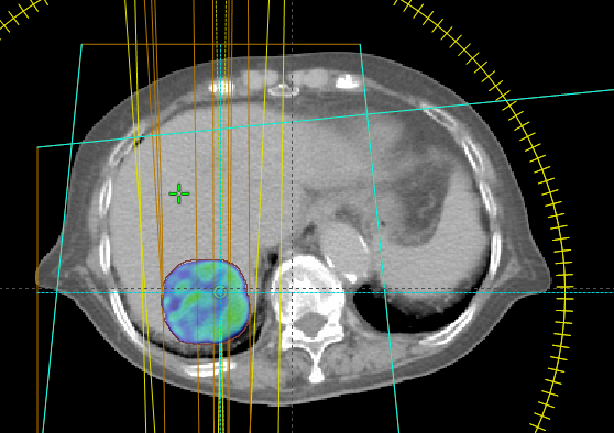 立體定位放射治療技術的特點是極高精準度,治療療程為高劑量、少次數。因為治療次數少,治療天數大幅縮短;因為極高精準度及單次劑量高,治療副作用輕微且療效佳(臨床適用於早期肺癌、肝腫瘤或低數量轉移、腦部轉移或腫瘤、或是轉移腫瘤,詳細相關適應症需諮詢放射腫瘤科醫師),下方案例為早期肺癌及肝腫瘤立體定位放射治療。