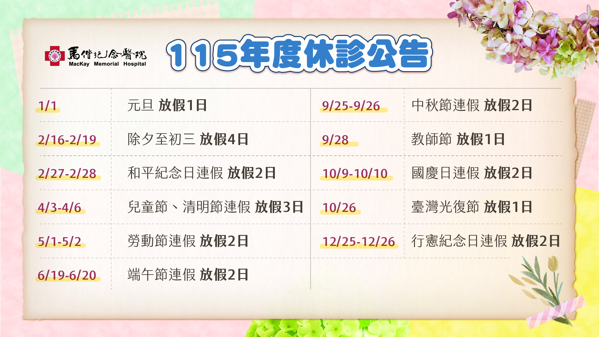 年度休診公告